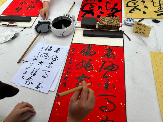 下午1点半,活动启动。区书法家协会三位书法家率先开笔示范,专业生动的演绎赢得阵阵喝彩。随后,青少年们挥毫创作,握笔、运腕、落墨一丝不苟,“一马当先”“万马奔腾”“骏马迎春”等马年吉语跃然纸上,风格各异的作品饱含对新春的期盼与对传统文化的热爱。香樟林内墨香交织童真,笑语伴着掌声,勾勒出温馨的文化传承图景。