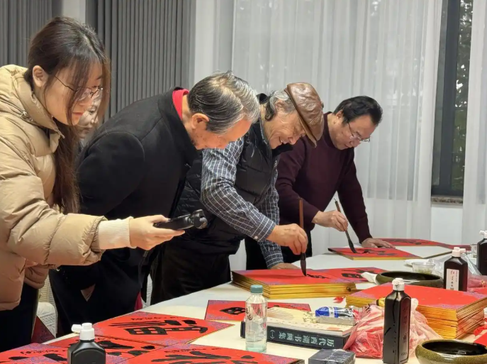 活动现场,红纸铺展,翰墨飘香。书法家们笔走龙蛇,创作了琳琅满目的“福”字作品。